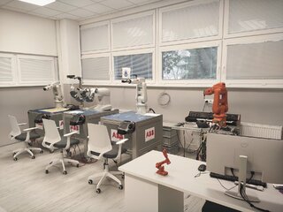 Spolupráca so svetovými lídrami v oblasti ROBOTIKY a AUTOMATIZÁCIE ( ABB, SIEMENS,SMC a další), priniesla vybudovanie NOVEJ UČEBNE ROBOTIKY, kde ku 3 robotom IRB120 pribudol DVOJRAMENNÝ KOLABORATÍVNY ROBOT YUMI, ktorý sa stal novým štandardom v kolaboratívnej robotike.