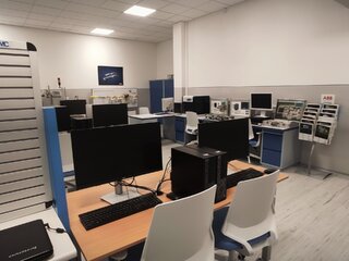 Štandardom učebne je 12 pracovných miest s PC zostavami, pracujúcimi so SW SIMATICOM STEP7 Profesionál 18.